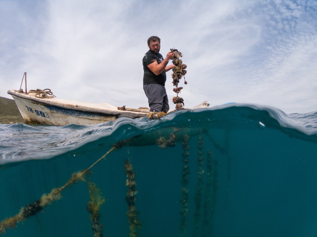 Oyster producer Zdravko Lazic inspects oysters at his farm in Brijesta, Croatia